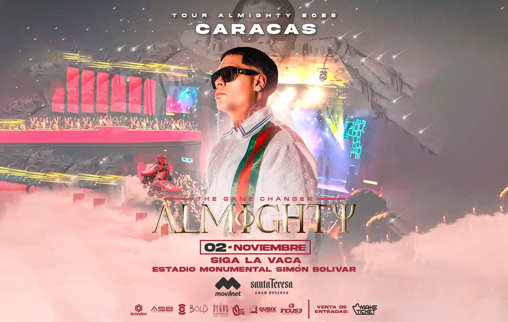 Indus3 Producciones, Oz Show y Qubix Productions anuncian la llegada a Venezuela del cantautor puertorriqueño, Almighty, con su explosivo “Endiosau Tour”, el próximo 2 de noviembre en Siga La Vaca, ubicado en el Estadio Monumental de Caracas Simón Bolívar. Una noche única donde la fuerza del trap y la energía urbana se apoderarán de la ciudad.